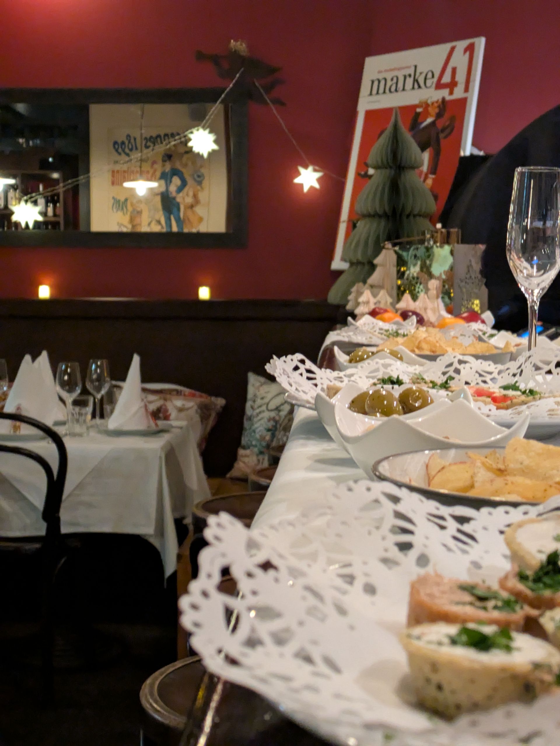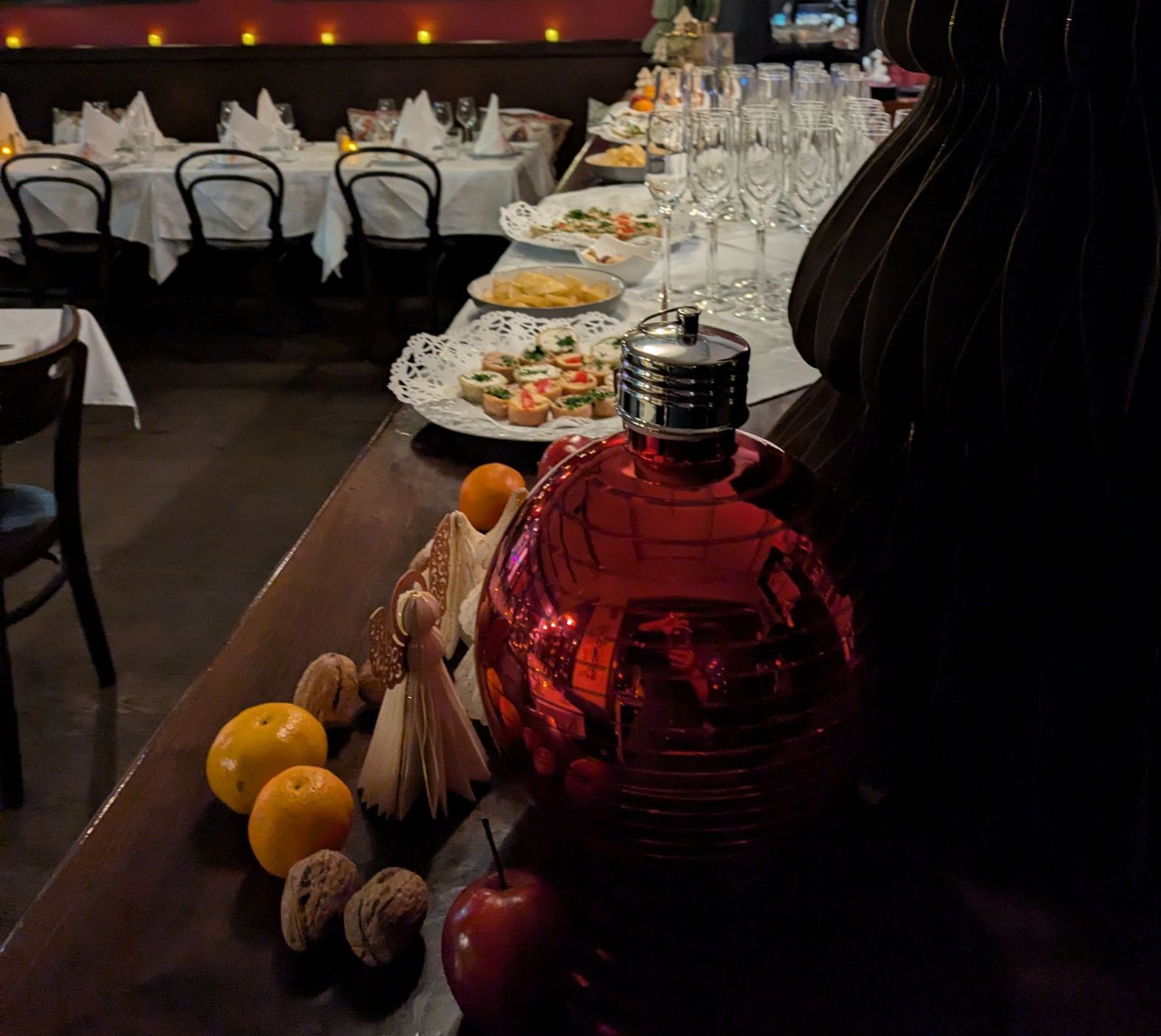 Organisez votre Fête de Noël à Munich Au Café Dupont. Notre charmant bistro offre une ambiance unique, festive et chaleureuse, idéale pour terminer l'année en équipe.